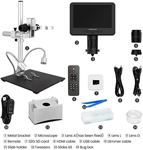 - Multifunctional Accessories: Includes remote control, dimmer cable, slide holder with clips, tweezers, and bug box.