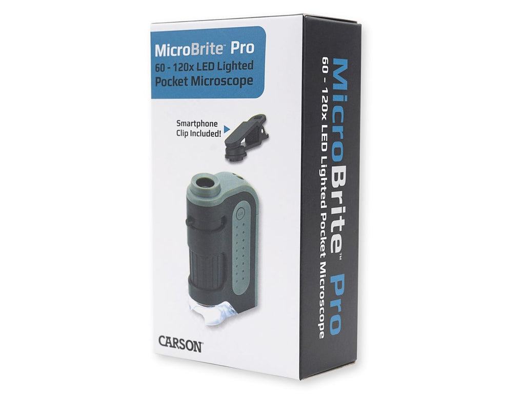 - Quality Engineering – The Carson MicroBrite Pro LED Lit Pocket Microscope features an extremely lightweight compact design without compromising performance. Crafted with precision molded aspheric lenses to provide premium optics with 60x-120x high magnification & bright, clear vision.