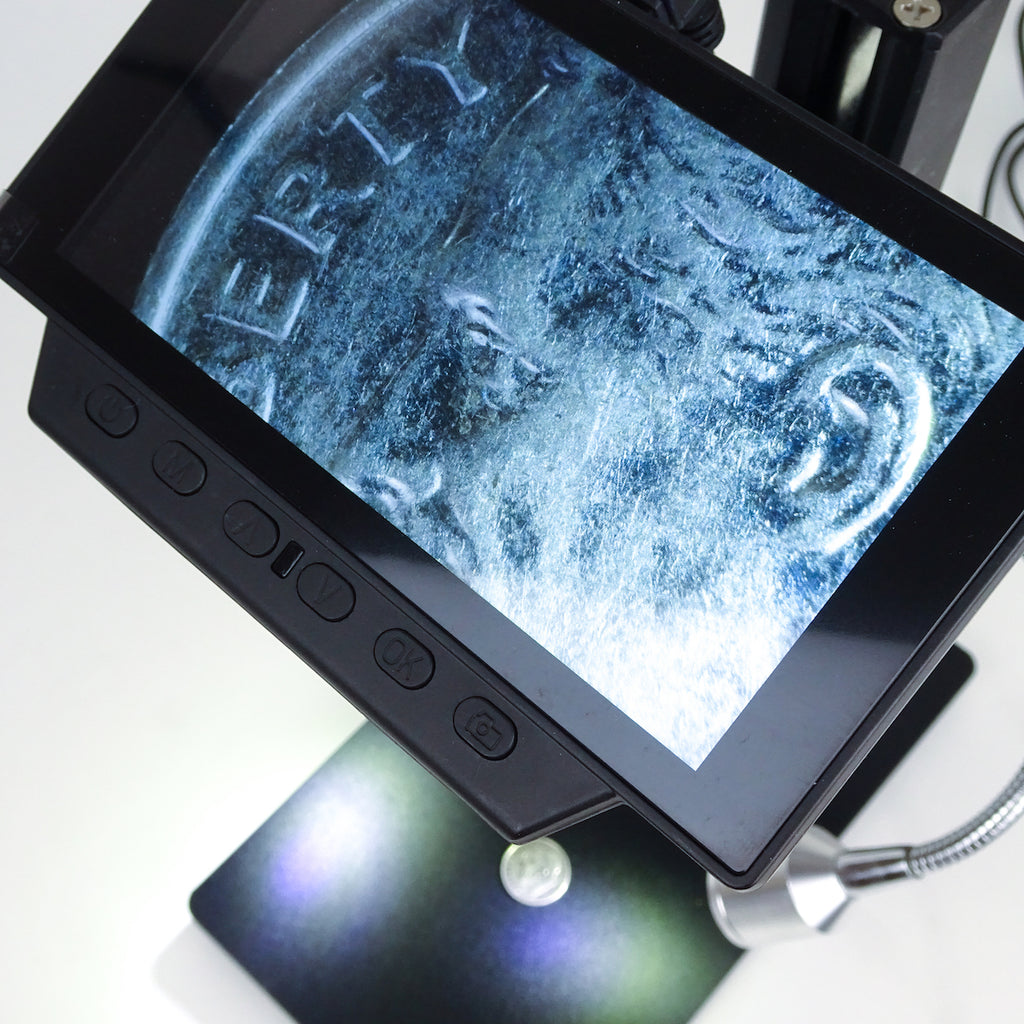 With up to 560x apparent magnification, you can use The Andonstar Digital Microscope to view all sorts of objects around the house. Coins, fingers, small pets, insects, fabrics, you name it. Please note that you cannot view lake water organisms with this type of reflected light microscope. Those types of organisms are too small and transparent.