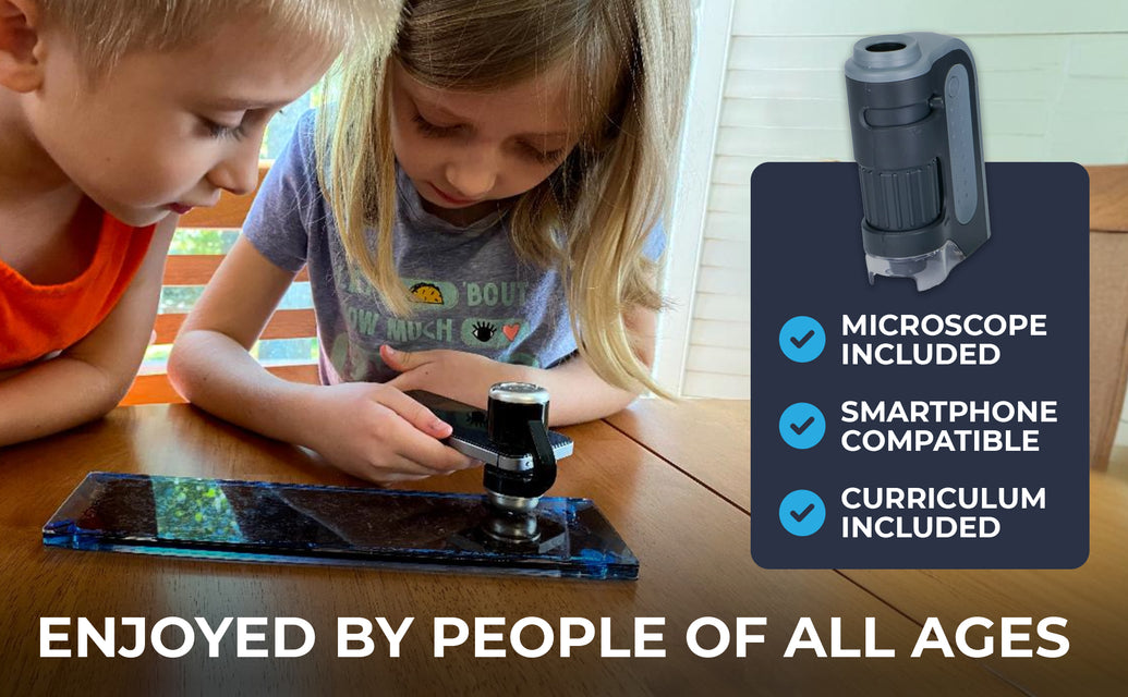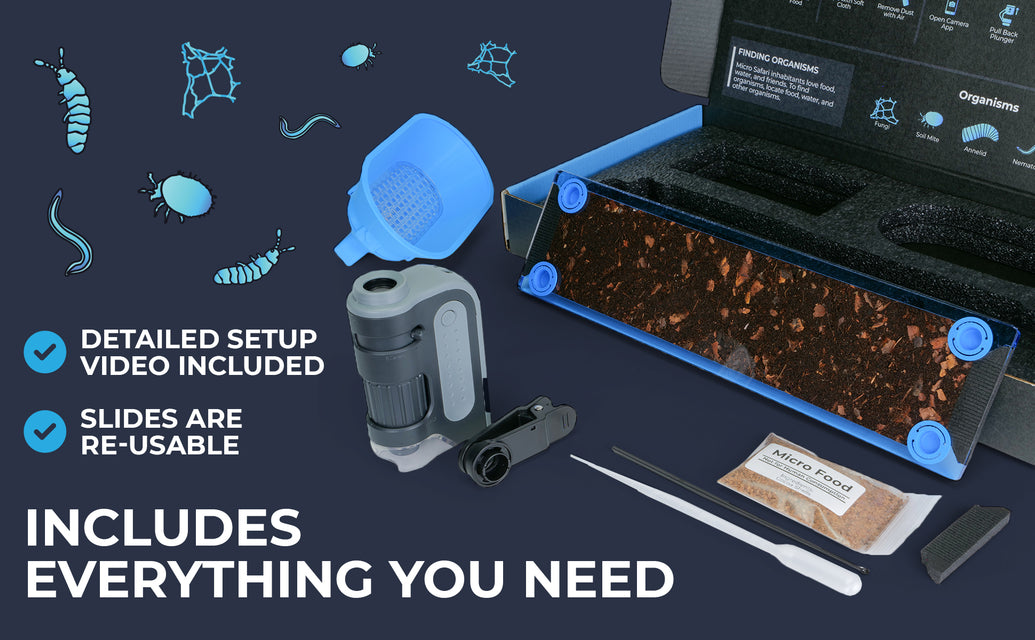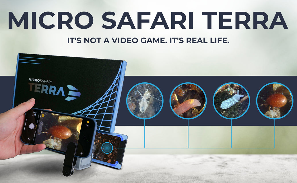 The Micro Safari Terra Kit sparks hours of wonder and awe. It features a Safari Slide that houses a full ecosystem of different micro organisms. With the Mobile Microscope, you and fellow scientists can explore vast hidden micro-worlds.
